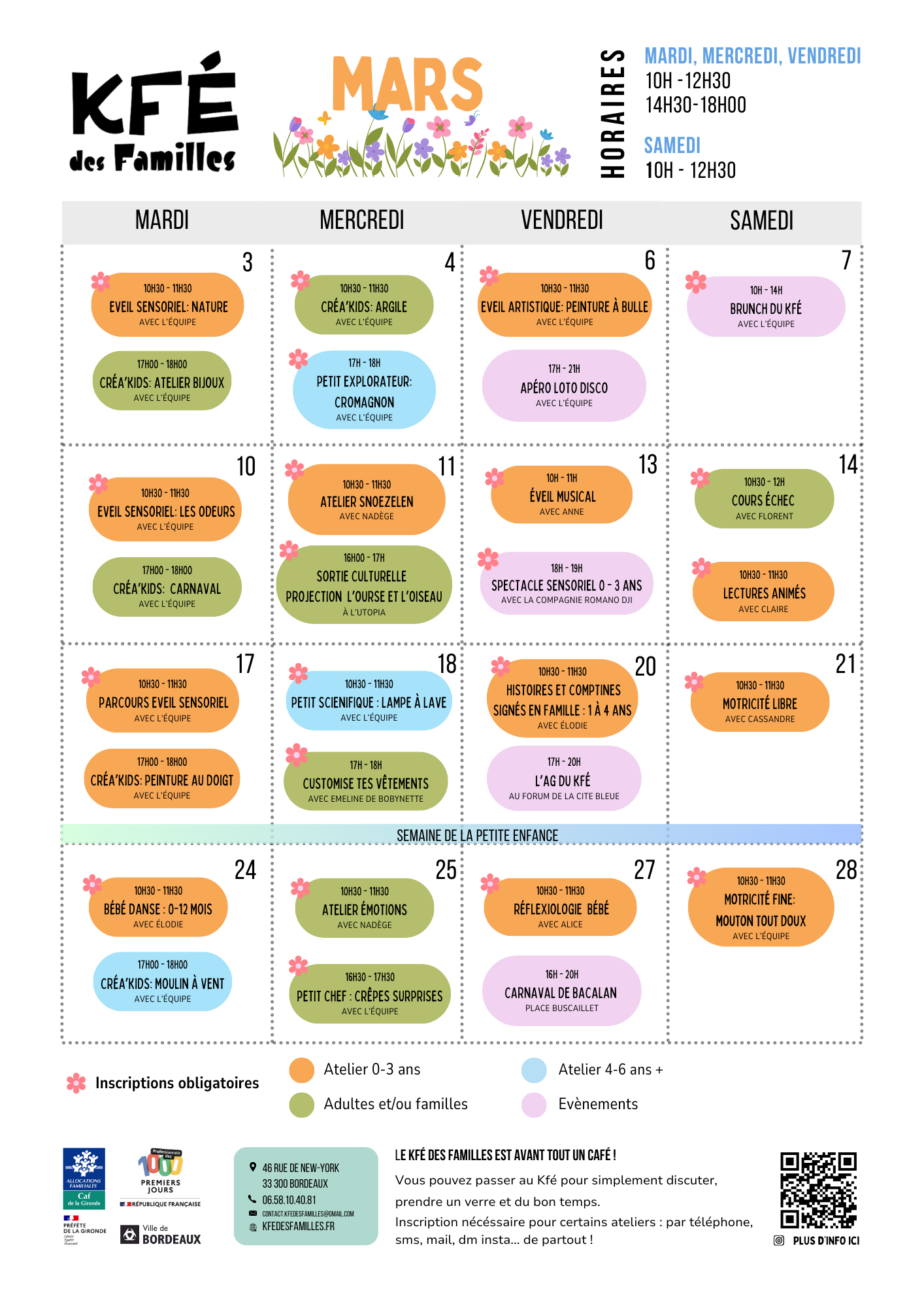 Ateliers d’éveil pour les tout-petits, animations créatives, temps d’échange autour de la parentalité et moments conviviaux pour toute la famille.